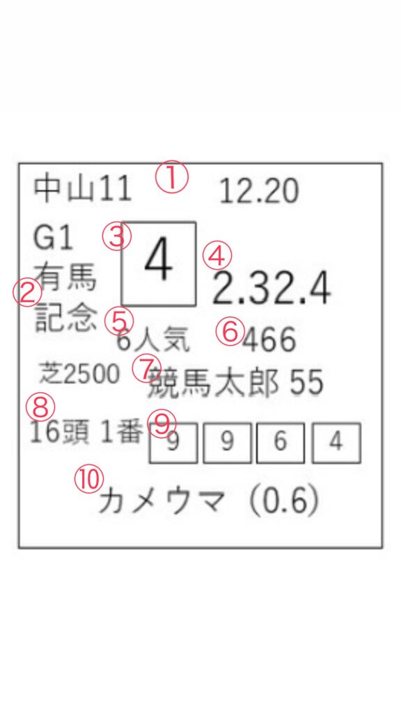 まず、馬柱には、競走馬についての主な情報が載っています。