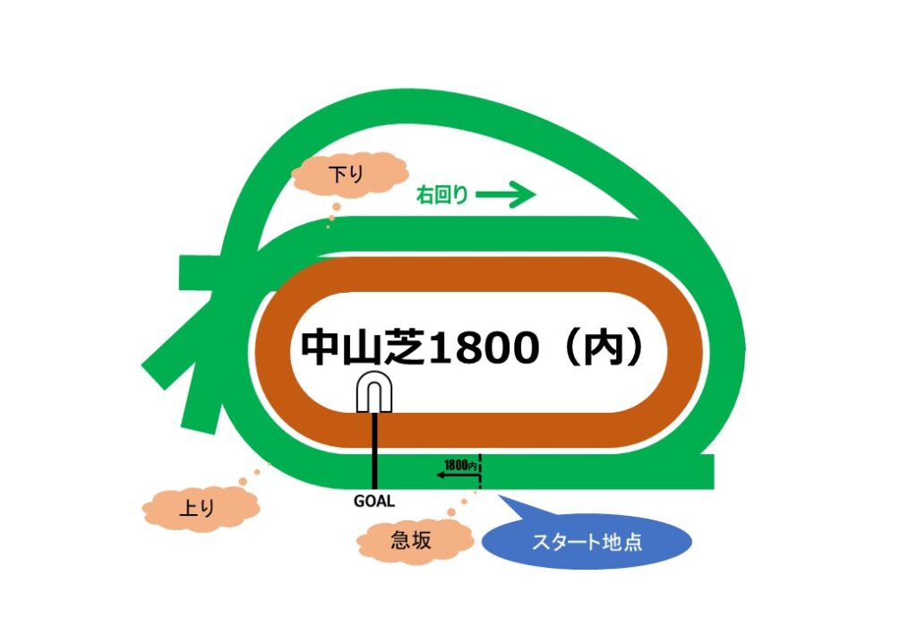 中山芝1800mは、ホームストレッチの急坂途中からのスタートとなっています。
